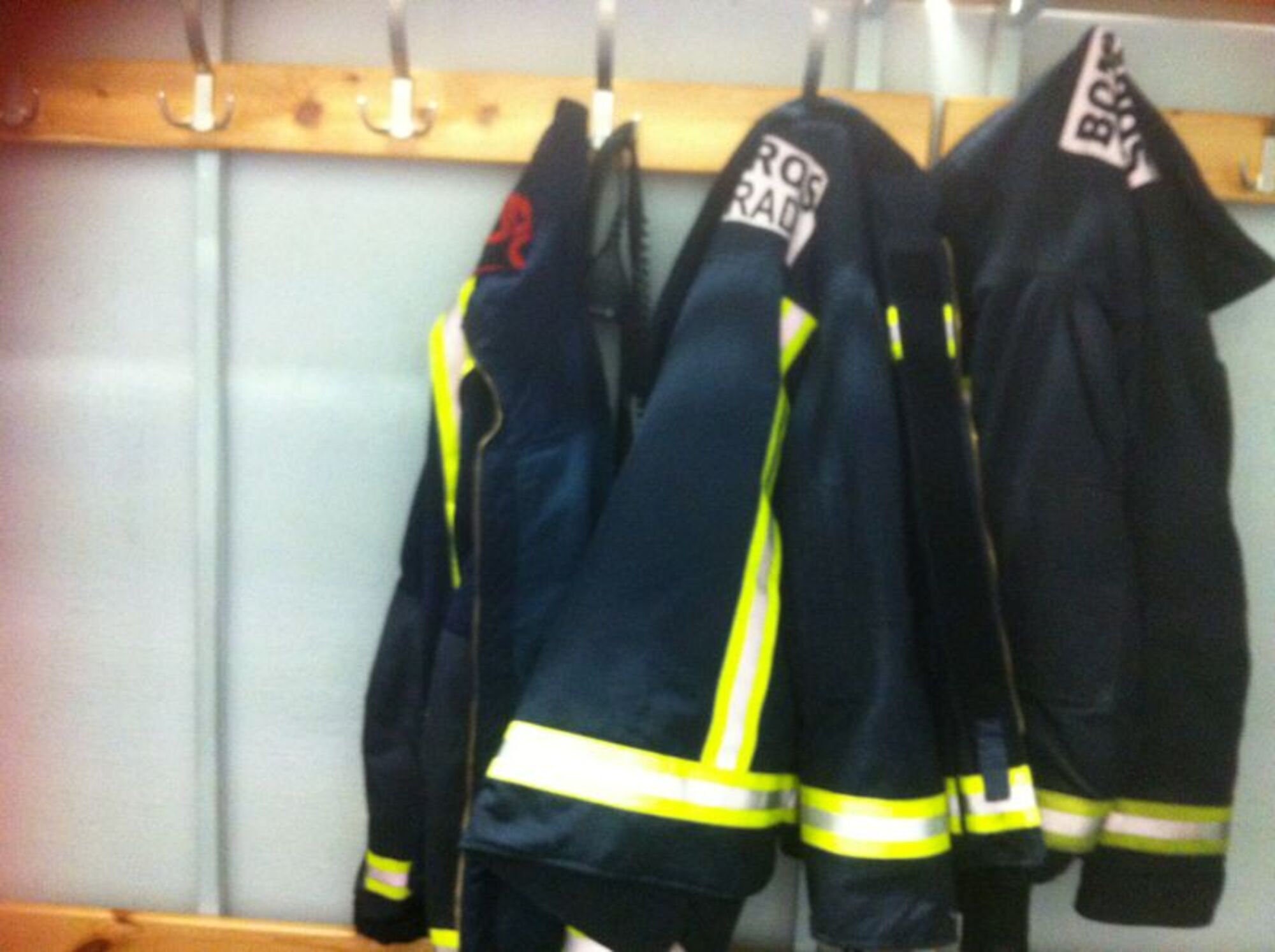Además, tienen cuartos en los que descansar. Son de tres personas, con cuarto de baño en cada una de las habitaciones. “Cuando hay una salida nos tiramos todos por la barra y bajamos muy rápido. Suena una megafonía diciéndote el lugar del altercado. Y te dice los camiones que van y cada uno sabe en qué camión debe montarse”, nos contó uno de los bomberos. Tienen todo preparado para vestirse sin perder tiempo, mientras el conductor mira la calle (en la pared tienen los planos de la ciudad). Así, tienen dos tipos de ropa, la de faena que es para intervenciones más ligeras y los chaquetones de intervención para el fuego, que son de un material que aguanta mucho el calor. “Están los pantalones así montados, llegas, te pones las zapatillas, te metes, te pones los tirantes y sales zumbando. Lo dejamos todo montado. En los chaquetones de intervención llevamos el nombre y en el casco también para identificarnos”.