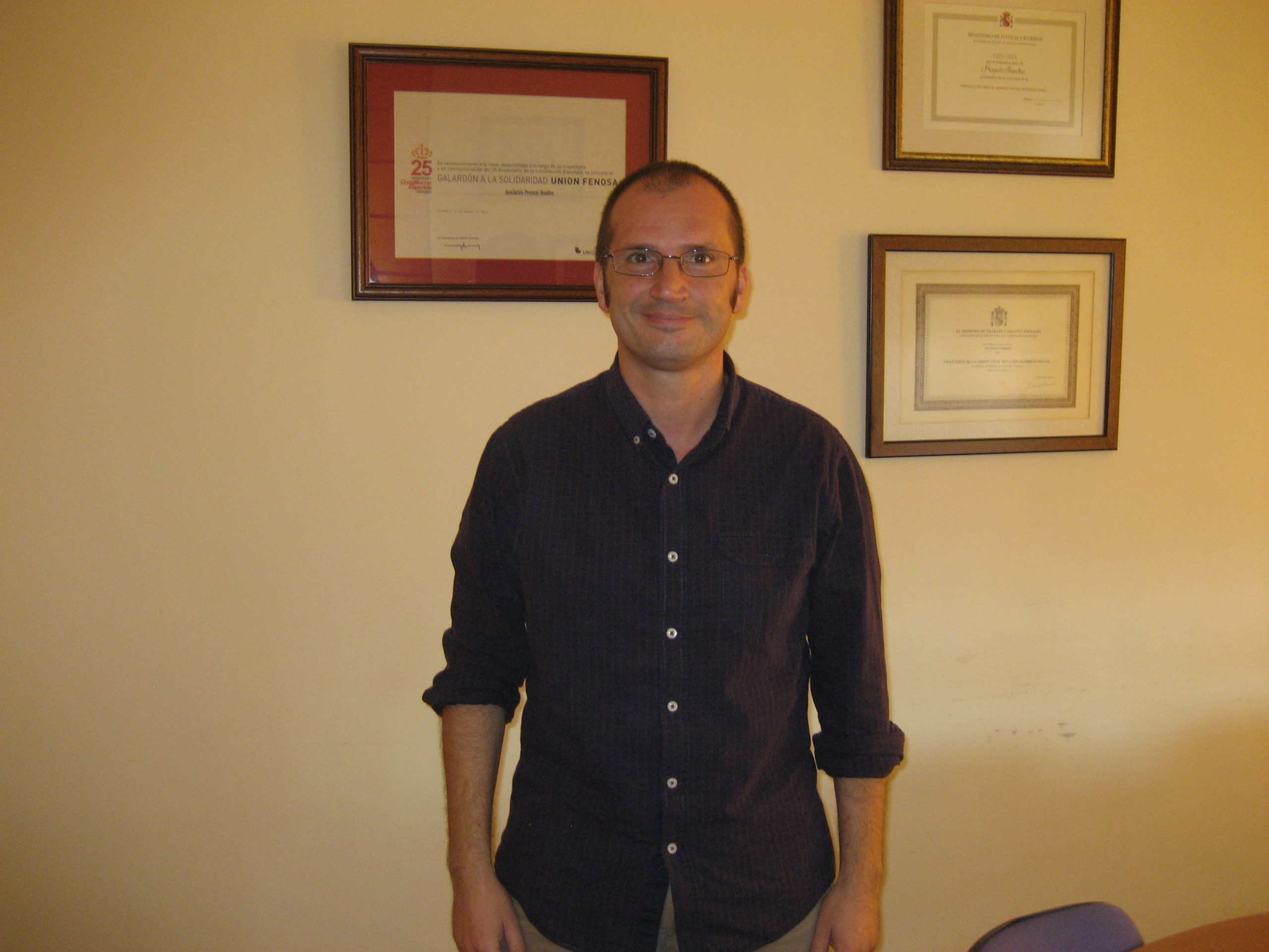 R: De formación original soy psicólogo. Me ofrecieron ir 15 días a ver cómo funcionaba el Centro de Proyecto Hombre en Sevilla, un centro estupendo en el barrio de Triana que lo dirige Francisco Herrera del Pollo. Me quedé totalmente alucinado, yo tenía un concepto y un estereotipo distinto acerca de lo que es un centro de tratamiento de adicciones y de cuál es el enfoque de tratamiento de éstas y me quedé totalmente enamorado. Primero me ofrecieron 15 días, después me ofrecieron una semana más, después estar un año completo de formación. He estado 12 años y 2 años que llevo aquí en Madrid. Empecé por 15 días y la verdad es que se han hecho un poco larguitos.